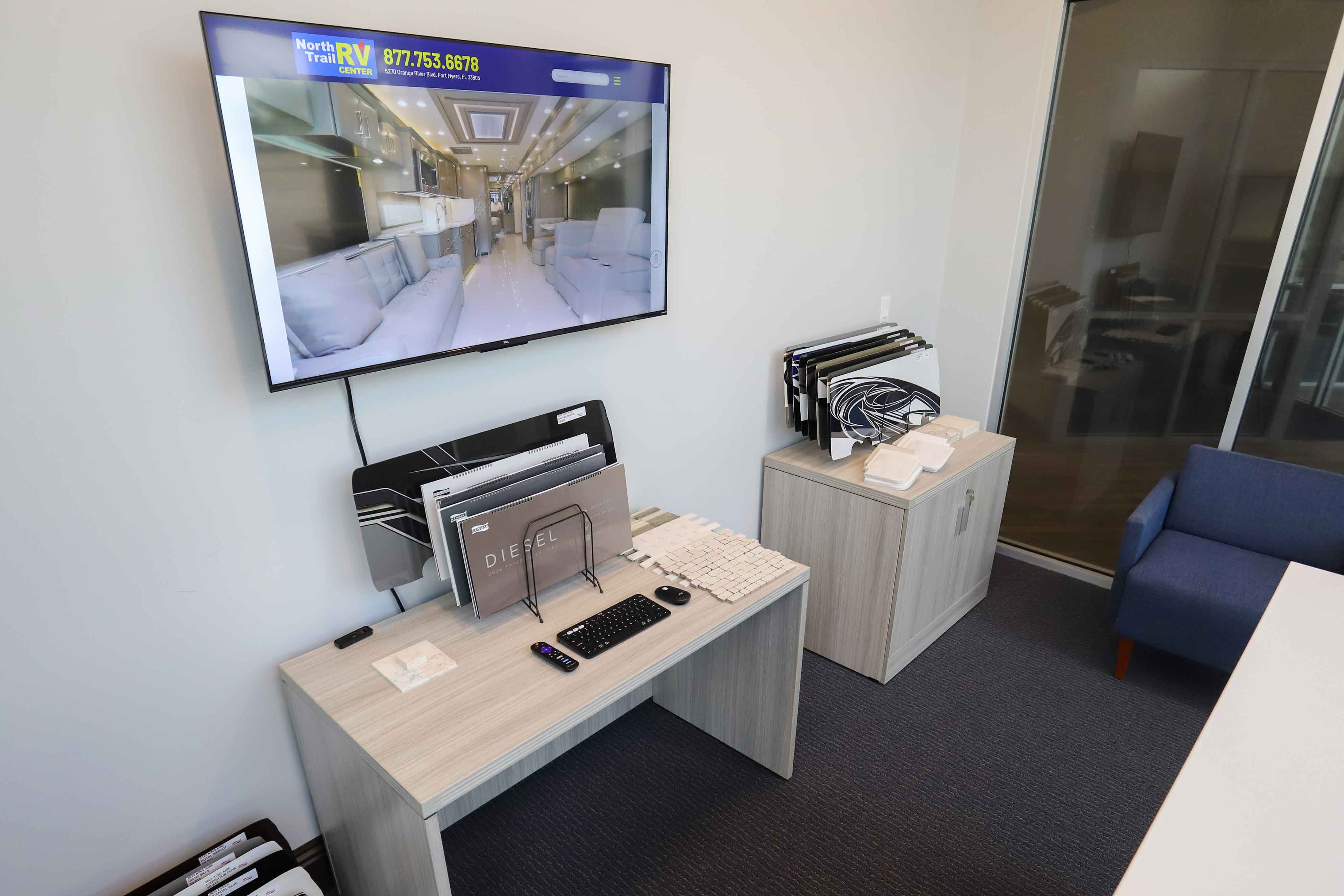 At our Design Center, you can explore a vast selection of customization options. From cabinetry and flooring to fabrics, exterior paint, and countertops, we offer physical samples that you can see and feel, allowing you to make informed decisions about every aspect of your motorhome's interior and exterior.
