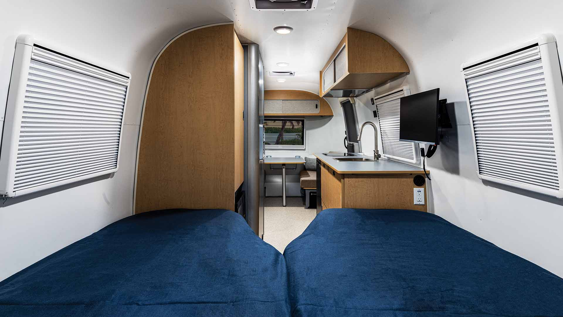 The 2026 Airstream World Traveler Travel Trailer is designed to make your road adventures comfortable, adaptable, and effortless. Its lightweight, easy-to-tow build paired with a classic aerodynamic aluminum exterior makes it a great choice for towing with a mid-sized SUV or crossover, opening the door to spontaneous travel and scenic detours. Inside, the World Traveler features innovative design elements like unique V-shaped twin beds that free up living space and multifunctional windows that allow airflow, privacy, or full open views. The flexible interior also includes a dinette area that converts from a four-person dining space to a lounge or extra sleeping area, creating versatility for relaxing, dining, and rest.