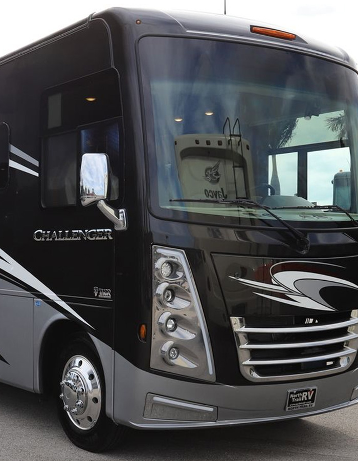 Here at North Trail RV Center, we feature the best models made by some of the most trusted RV manufacturers in the country. We always keep our lot packed with a wide variety of makes, models, styles and floor plans to satisfy the needs of all our customers. If there is a special feature or upgrade you have been looking for, chances are we have a unit in stock on our lot that has it. Are you looking for a bunkhouse floor plan with the marble counters and the light grey Ultraleather interior? We most likely have one. Or maybe you have been searching for a Super C with an overhead bunk and extra slide-out for the king bed with a Desert Valencia paint scheme. That is a wonderful choice and we would love to show you how that looks in person. So, stop by our showroom and talk to one of our expert sales associates and let us give you a tour of your dream RV today!