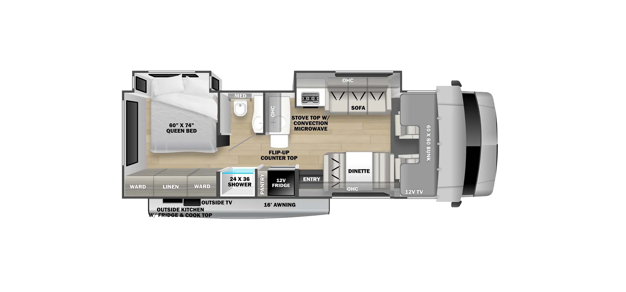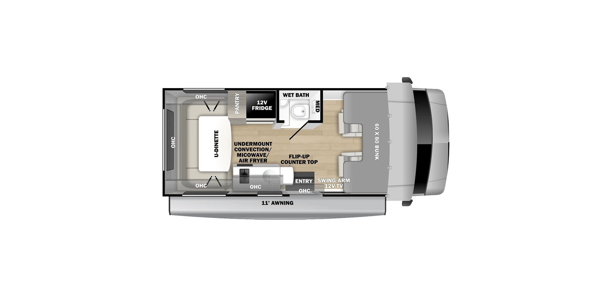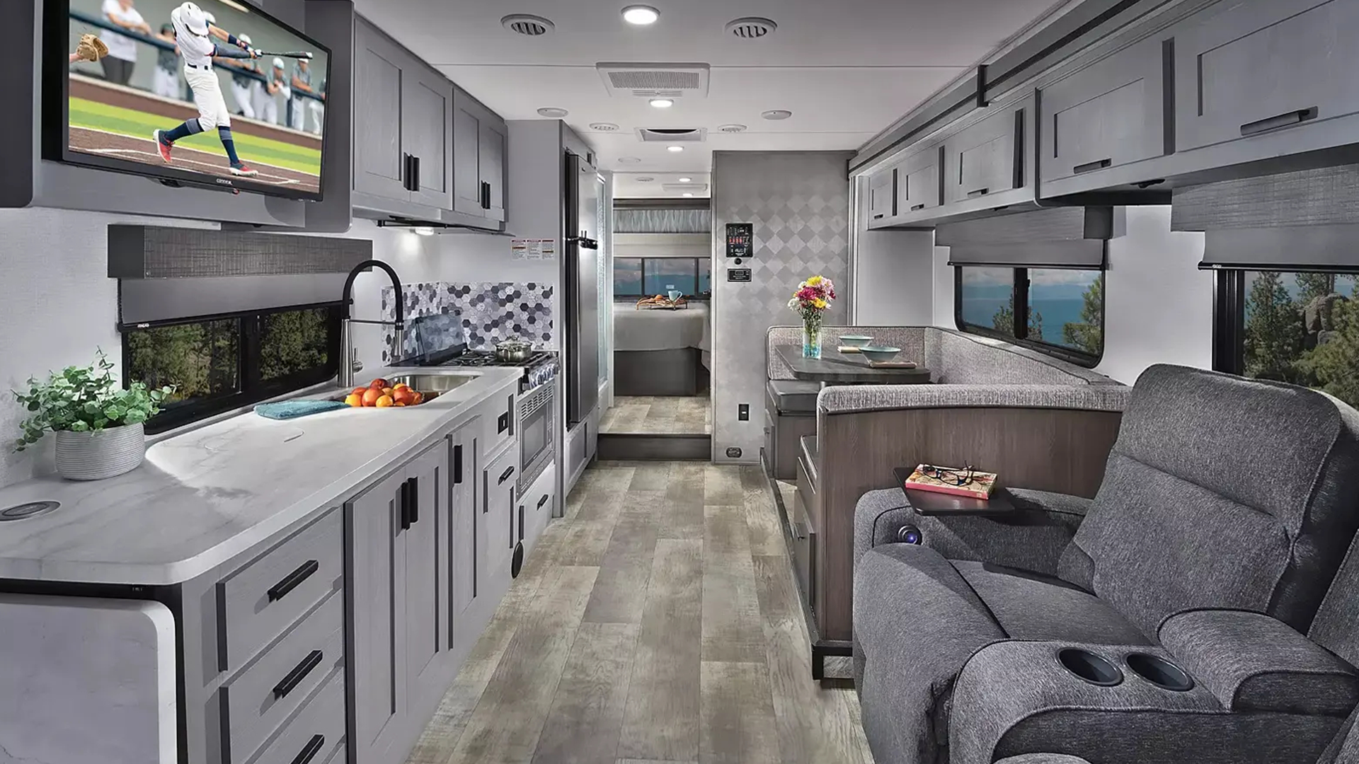 On the exterior, the Solera features aluminum-framed laminated sidewalls, gel coat fiberglass, block foam insulation, tinted windows, and a lighted power awning for outdoor living. Driving comfort and safety are enhanced with a backup and side-view camera system, keyless entry, and a modern touchscreen dash with smartphone integration. Available across multiple floor plans and chassis options, the 2026 Solera delivers a well-rounded Class C motorhome experience that balances performance, practicality, and everyday livability.