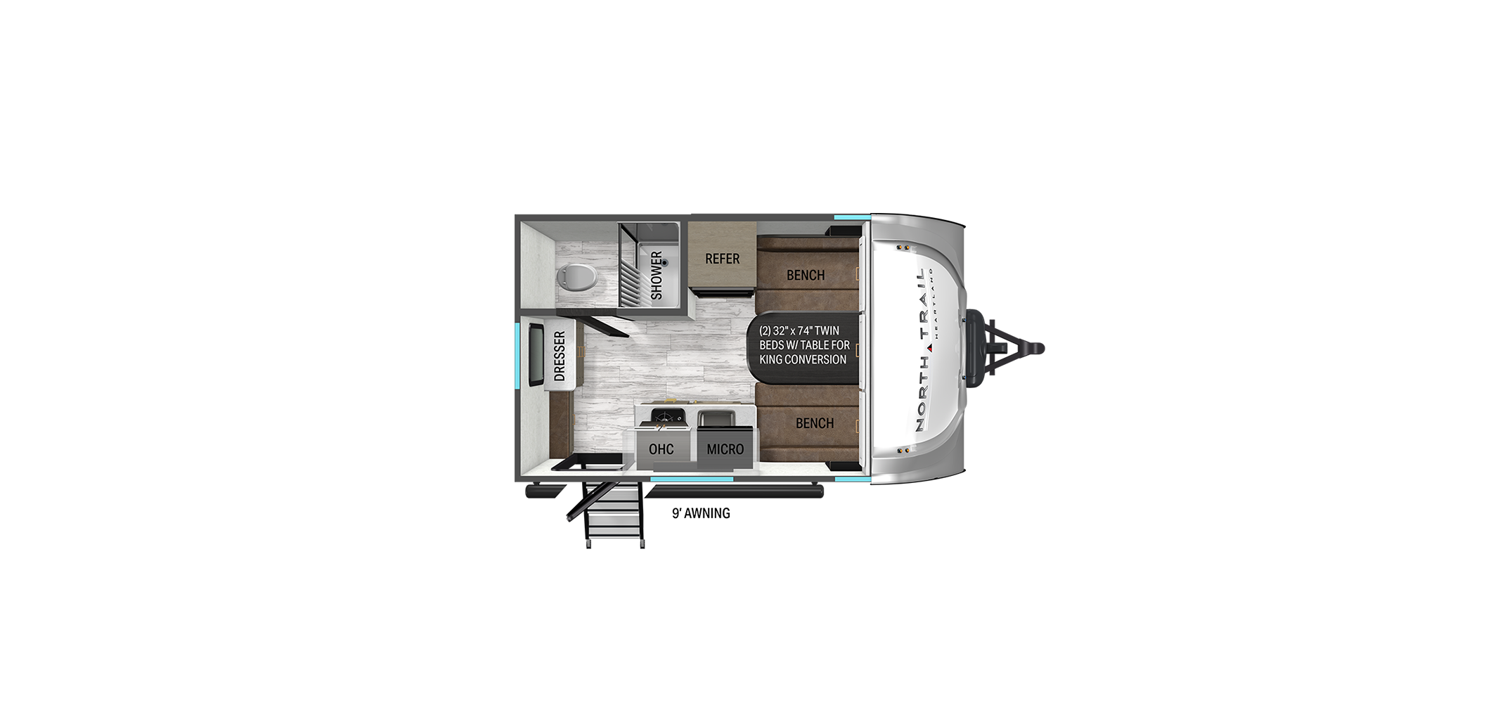 The 2026 Heartland North Trail Ultra Lite travel trailers strike a smart balance between rugged durability and residential comfort. Built for easy towing with half ton trucks and SUVs, these trailers feature a wide track suspension and lightweight construction for a smooth, confident ride across varying terrain. Heartland’s TuffShell construction adds serious strength with vacuum bonded laminated walls and a reinforced roof system, giving the North Trail a solid, dependable feel without unnecessary weight.