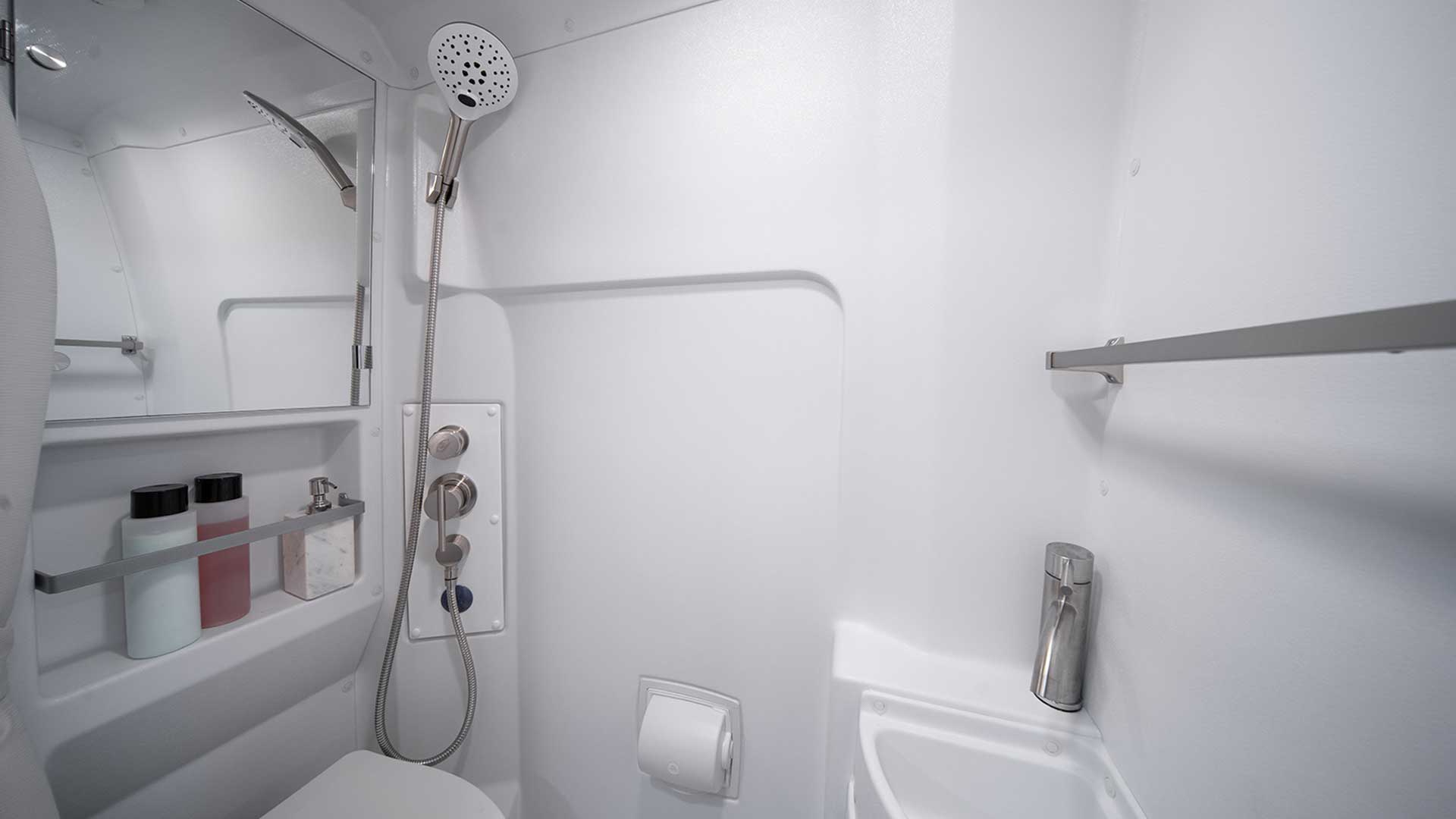 Step inside the Swift and experience how Jayco maximizes every square inch with purposeful design. The interior features Tecnoform® European-style cabinetry, durable flooring, and a functional layout with rear convertible seating that transforms into a sleeping area. The kitchen is well-equipped with a solid-surface countertop, induction cooktop, microwave, and 3 cu. ft. refrigerator. The all-in-one wet bath includes a shower, toilet, and Aqua View® SHOWERMI$ER™ system to help conserve water on the go.