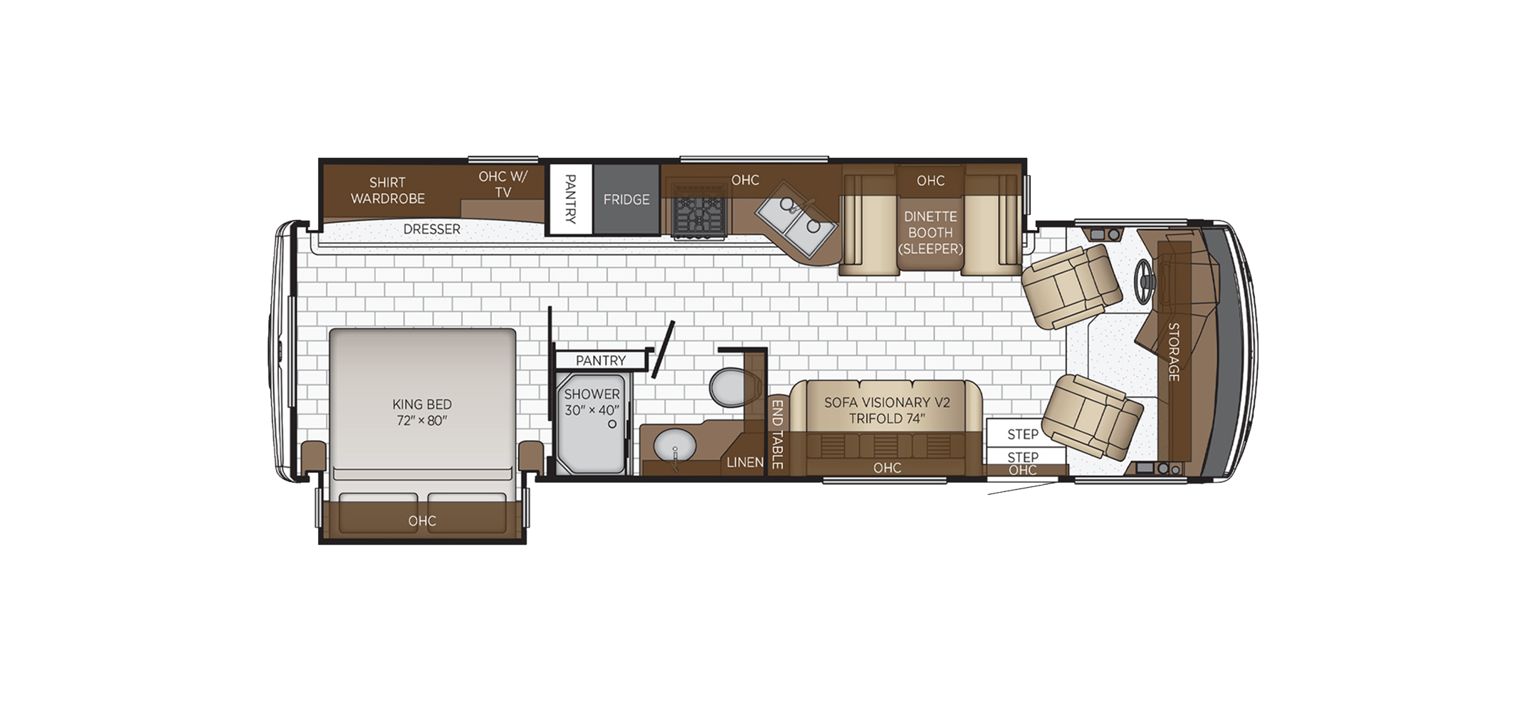 It’s available in eight total floor plans, ranging from 30 to 38 feet in length. Every Bay Star is built on a Ford