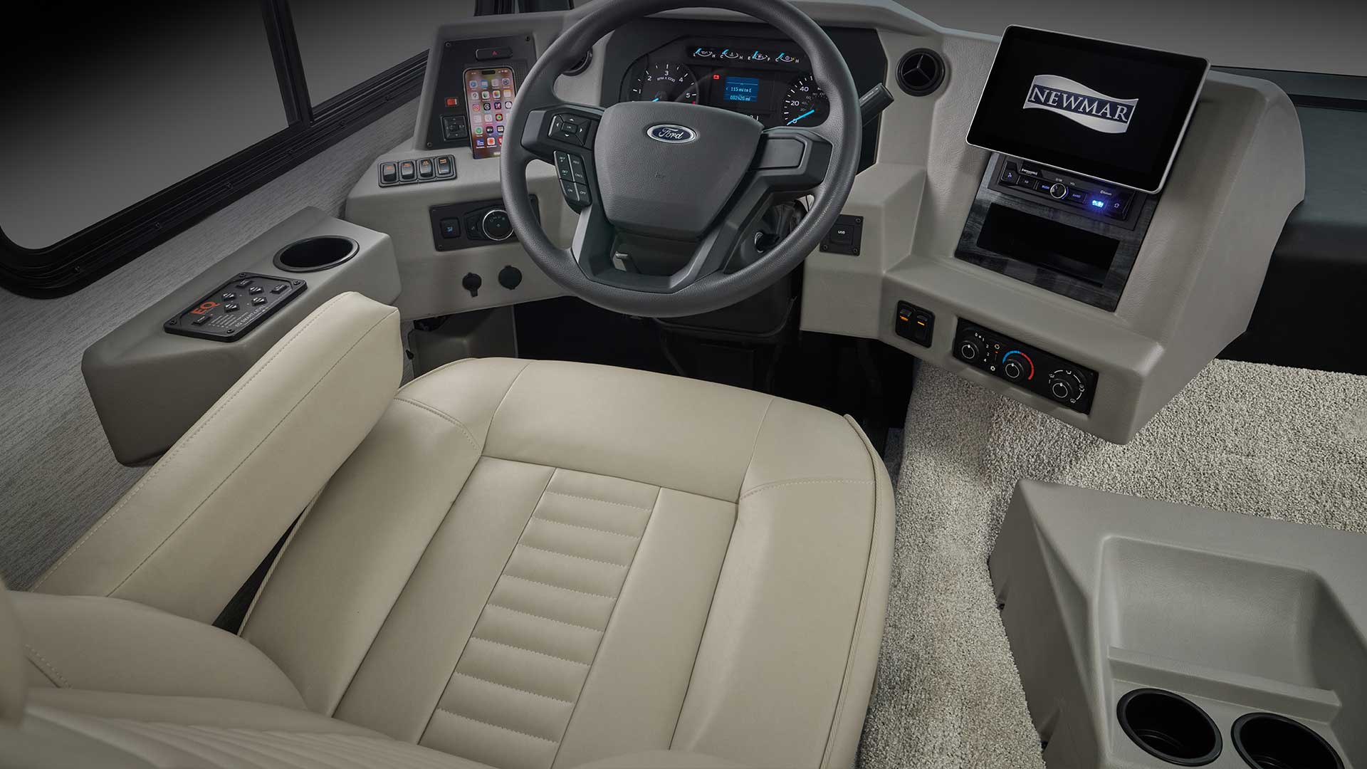 Built on the trusted Ford® F-Series chassis and powered by a robust 7.3L V8 engine, the Bay Star Sport offers a smooth, responsive ride with plenty of towing capability. Electronic stability control and a hydraulic leveling system provide added safety and convenience, while the coach’s aerodynamic design improves fuel efficiency and handling on the road.