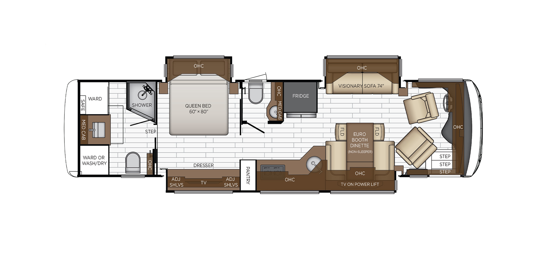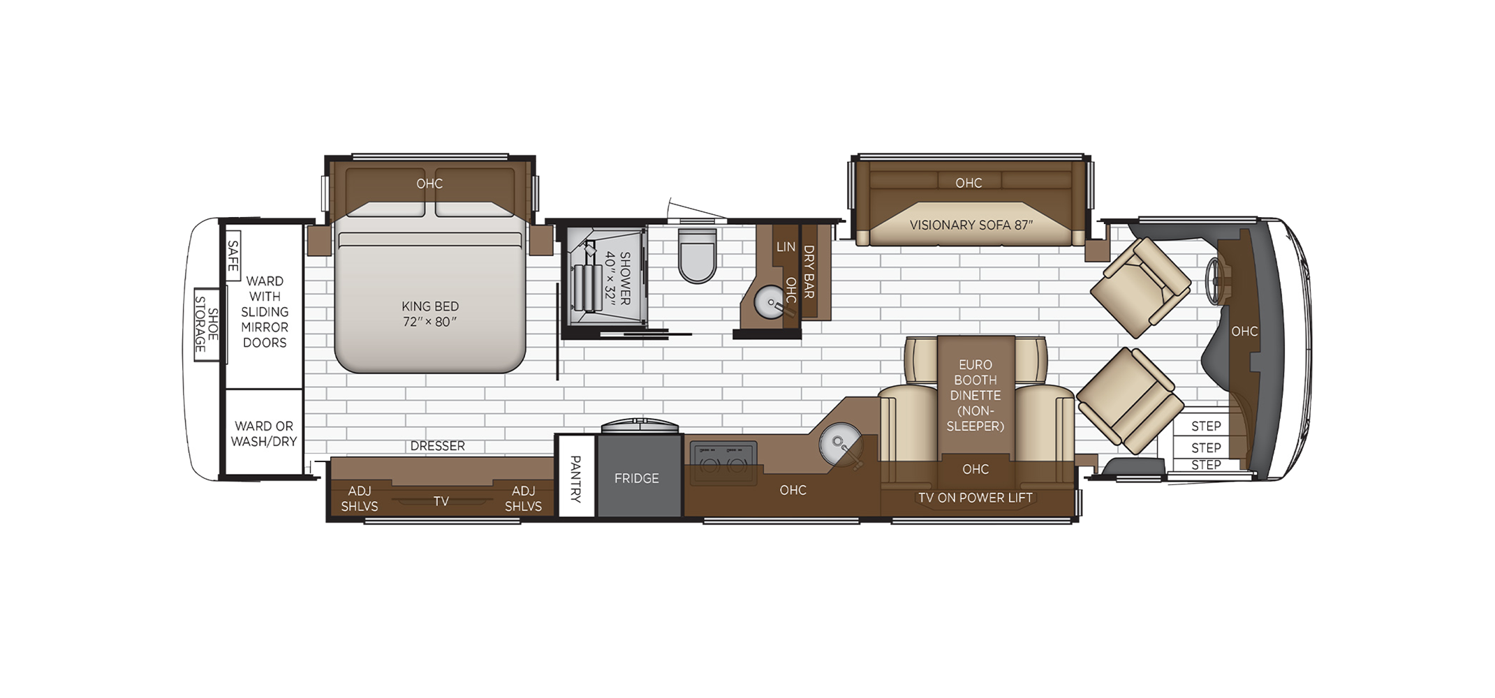 Hit the road with ease behind the wheel of the New Aire. Available on a Freightliner® chassis or an optional Spartan® chassis, it comes packing a Cummins diesel engine with 450 horsepower and 1250 lb./ft. of torque.VIEW A BROCHURE