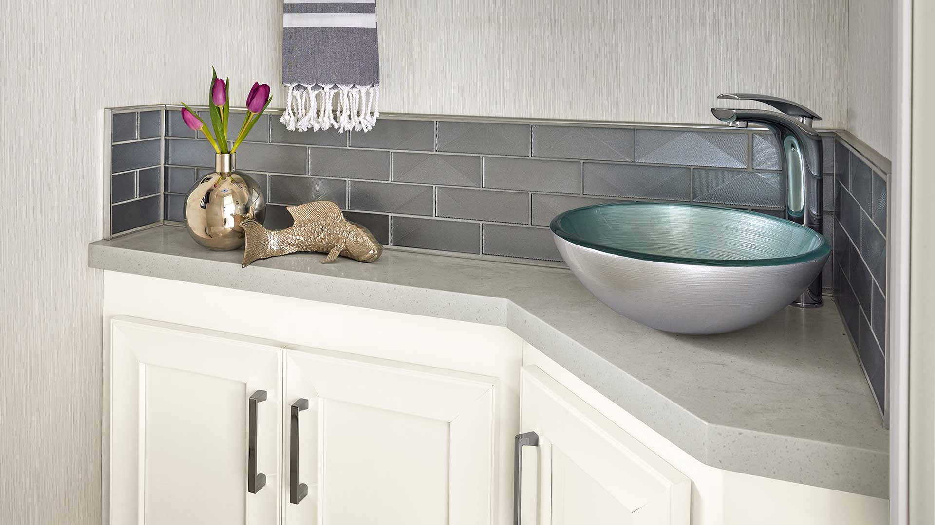 Inside, the Ventana is all about upscale livability. Choose from a selection of sophisticated interior décor packages and hardwood cabinetry options. The open floorplans feature porcelain tile flooring, solid surface countertops, and top-of-the-line appliances, including a Whirlpool® refrigerator and optional dishwasher. Ambient lighting and power day/night shades add to the serene, residential feel.