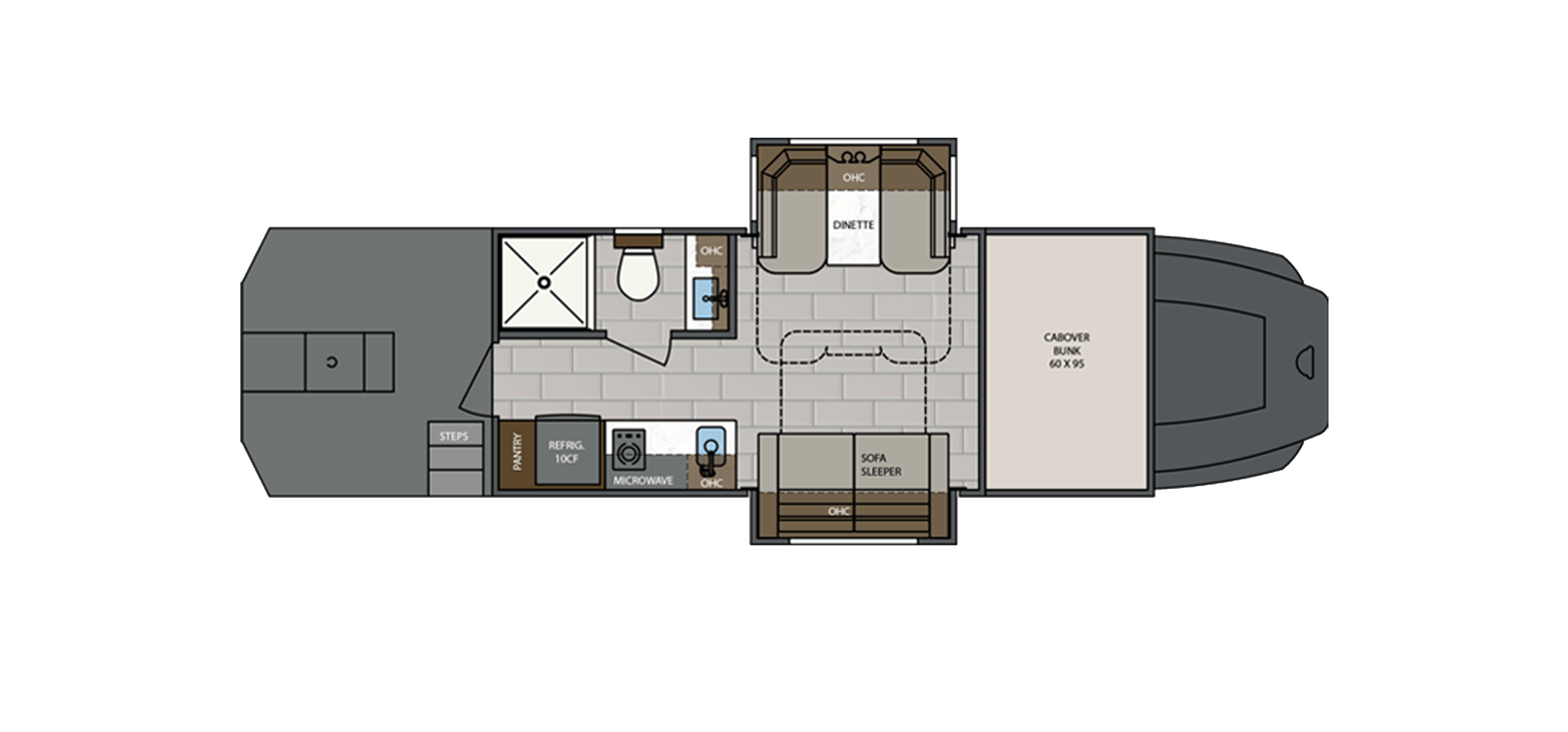 Your interior comes flush with inviting sofas, a dinette with chairs and a galley with a backsplash accent. Take advantage of hardwood cabinetry and polished solid-surface countertops. Enjoy a good night's rest on a comfortable mattress. Your living space accommodates all your needs, from morning meals at the table to relaxing at the end of your day.
