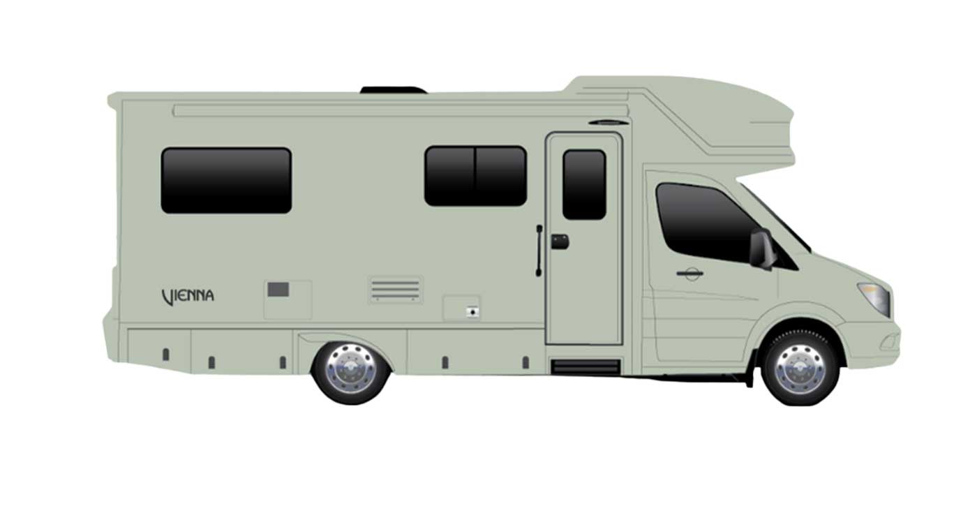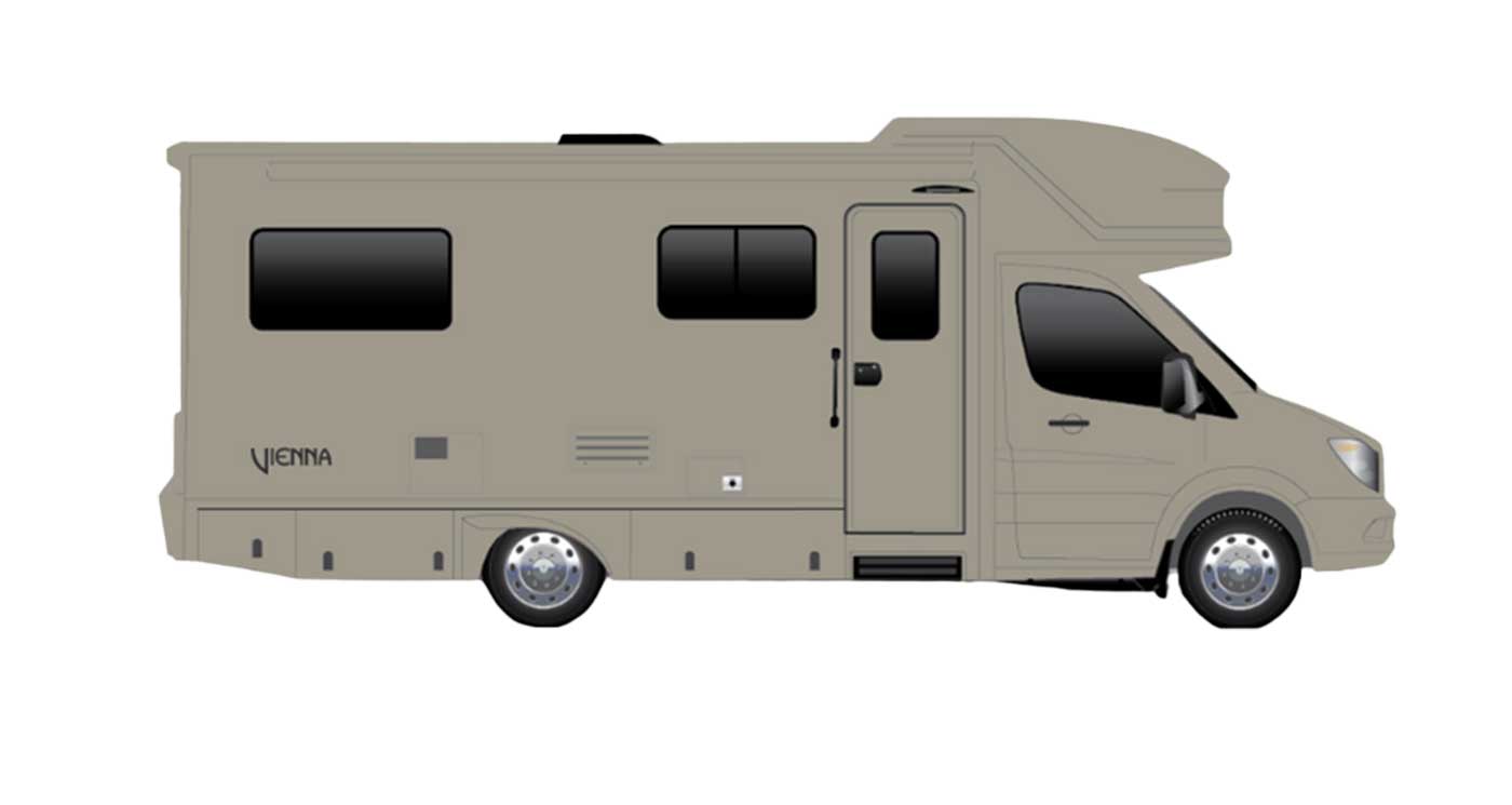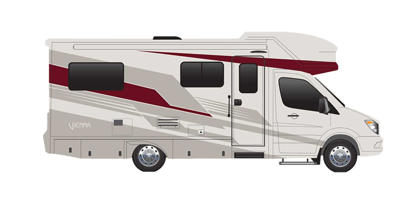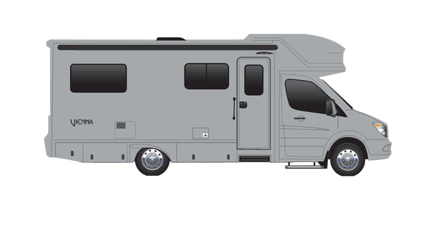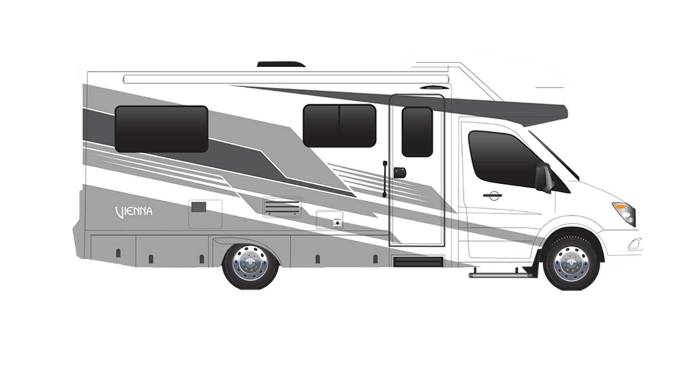 Inside, the Vienna features modern European-inspired design with ultra-soft seating, solid-surface countertops, and high-gloss cabinetry. Smart floorplans maximize space with options like Murphy or fixed beds, a well-appointed wet bath, and upscale amenities throughout. Advanced technology, energy-efficient systems, and sleek exterior styling complete the package, creating a polished and comfortable motorhome built for effortless travel.